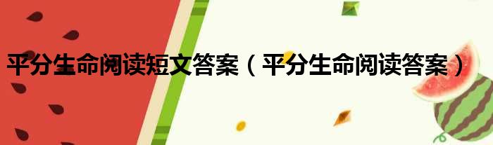 大家好,今天小六子来为大家解答以下的问题,关于平分生命阅读短文答案,平分生命阅读答案这个很多人还不知道,现在让我们一起来看看吧!
