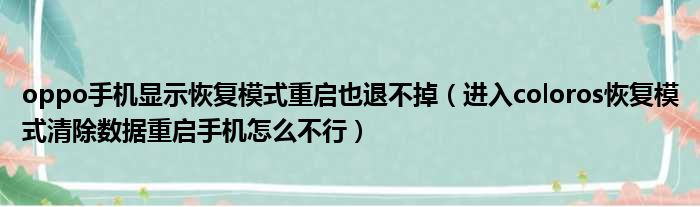 大家好,今天小六子来为大家解答以下的问题,关于oppo手机显示恢复模式重启也退不掉,进入coloros恢复模式清除数据重启手机怎么不行这个很多人还不知道,现在让我们一起来看看吧!