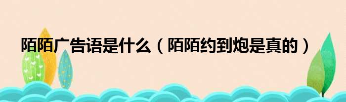 大家好,今天小六子来为大家解答以下的问题,关于陌陌广告语是什么,陌陌约到炮是真的这个很多人还不知道,现在让我们一起来看看吧!