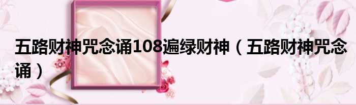 大家好,今天小六子来为大家解答以下的问题,关于五路财神咒念诵108遍绿财神,五路财神咒念诵这个很多人还不知道,现在让我们一起来看看吧!