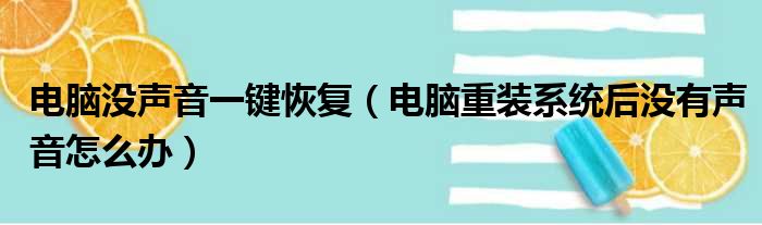 大家好,今天小六子来为大家解答以下的问题,关于电脑没声音一键恢复,电脑重装系统后没有声音怎么办这个很多人还不知道,现在让我们一起来看看吧!