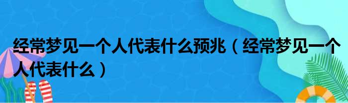 大家好,今天小六子来为大家解答以下的问题,关于经常梦见一个人代表什么预兆,经常梦见一个人代表什么这个很多人还不知道,现在让我们一起来看看吧!