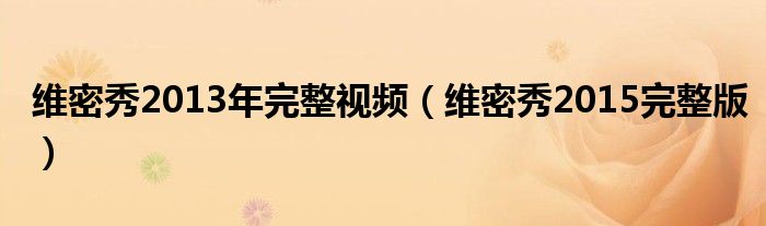 大家好,今天小六子来为大家解答以下的问题,关于维密秀2013年完整视频,维密秀2015完整版这个很多人还不知道,现在让我们一起来看看吧!