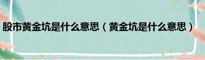 大家好,今天小六子来为大家解答以下的问题,关于股市黄金坑是什么意思,黄金坑是什么意思这个很多人还不知道,现在让我们一起来看看吧!