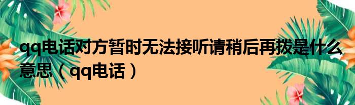 大家好,今天小六子来为大家解答以下的问题,关于qq电话对方暂时无法接听请稍后再拨是什么意思,qq电话这个很多人还不知道,现在让我们一起来看看吧!