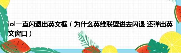 大家好,今天小六子来为大家解答以下的问题,关于lol一直闪退出英文框,为什么英雄联盟进去闪退 还弹出英文窗口这个很多人还不知道,现在让我们一起来看看吧!