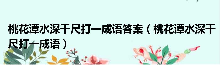 大家好,今天小六子来为大家解答以下的问题,关于桃花潭水深千尺打一成语答案,桃花潭水深千尺打一成语这个很多人还不知道,现在让我们一起来看看吧!