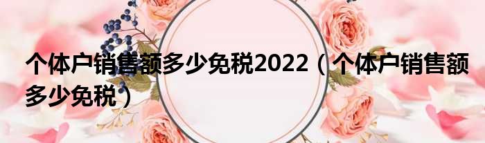 大家好,今天小六子来为大家解答以下的问题,关于个体户销售额多少免税2022,个体户销售额多少免税这个很多人还不知道,现在让我们一起来看看吧!