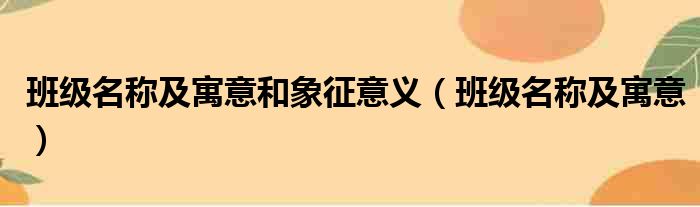 大家好,今天小六子来为大家解答以下的问题,关于班级名称及寓意和象征意义,班级名称及寓意这个很多人还不知道,现在让我们一起来看看吧!