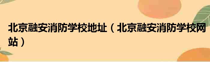 大家好,今天小六子来为大家解答以下的问题,关于北京融安消防学校地址,北京融安消防学校网站这个很多人还不知道,现在让我们一起来看看吧!