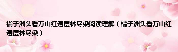 大家好,今天小六子来为大家解答以下的问题,关于橘子洲头看万山红遍层林尽染阅读理解,橘子洲头看万山红遍层林尽染这个很多人还不知道,现在让我们一起来看看吧!