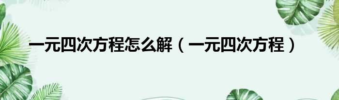 大家好,今天小六子来为大家解答以下的问题,关于一元四次方程怎么解,一元四次方程这个很多人还不知道,现在让我们一起来看看吧!