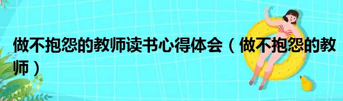 大家好,今天小六子来为大家解答以下的问题,关于做不抱怨的教师读书心得体会,做不抱怨的教师这个很多人还不知道,现在让我们一起来看看吧!