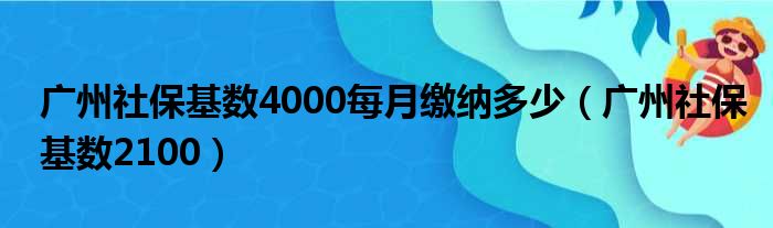 大家好,今天小六子来为大家解答以下的问题,关于广州社保基数4000每月缴纳多少,广州社保基数2100这个很多人还不知道,现在让我们一起来看看吧!