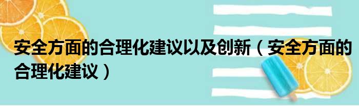 大家好,今天小六子来为大家解答以下的问题,关于安全方面的合理化建议以及创新,安全方面的合理化建议这个很多人还不知道,现在让我们一起来看看吧!