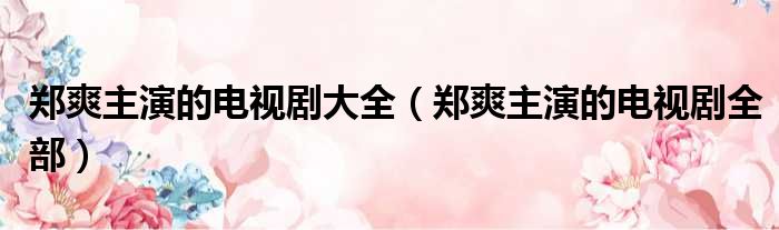 大家好,今天小六子来为大家解答以下的问题,关于郑爽主演的电视剧大全,郑爽主演的电视剧全部这个很多人还不知道,现在让我们一起来看看吧!