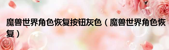 大家好,今天小六子来为大家解答以下的问题,关于魔兽世界角色恢复按钮灰色,魔兽世界角色恢复这个很多人还不知道,现在让我们一起来看看吧!