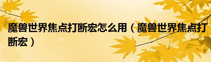 大家好,今天小六子来为大家解答以下的问题,关于魔兽世界焦点打断宏怎么用,魔兽世界焦点打断宏这个很多人还不知道,现在让我们一起来看看吧!