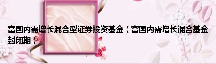 大家好,今天小六子来为大家解答以下的问题,关于富国内需增长混合型证券投资基金,富国内需增长混合基金封闭期这个很多人还不知道,现在让我们一起来看看吧!