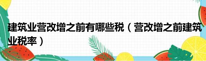 大家好,今天小六子来为大家解答以下的问题,关于建筑业营改增之前有哪些税,营改增之前建筑业税率这个很多人还不知道,现在让我们一起来看看吧!