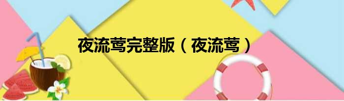 大家好,今天小六子来为大家解答以下的问题,关于夜流莺完整版,夜流莺这个很多人还不知道,现在让我们一起来看看吧!