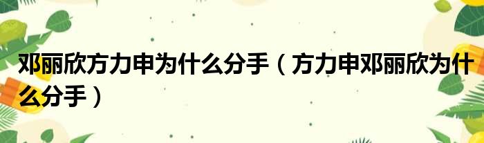 大家好,今天小六子来为大家解答以下的问题,关于邓丽欣方力申为什么分手,方力申邓丽欣为什么分手这个很多人还不知道,现在让我们一起来看看吧!