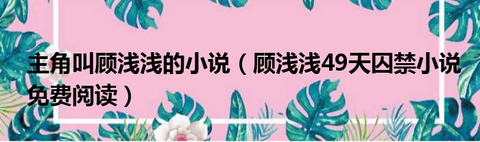 大家好,今天小六子来为大家解答以下的问题,关于主角叫顾浅浅的小说,顾浅浅49天囚禁小说免费阅读这个很多人还不知道,现在让我们一起来看看吧!