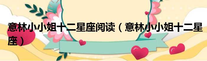 大家好,今天小六子来为大家解答以下的问题,关于意林小小姐十二星座阅读,意林小小姐十二星座这个很多人还不知道,现在让我们一起来看看吧!