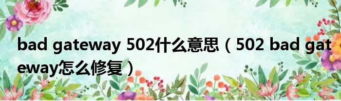 大家好,今天小六子来为大家解答以下的问题,关于bad gateway 502什么意思,502 bad gateway怎么修复这个很多人还不知道,现在让我们一起来看看吧!