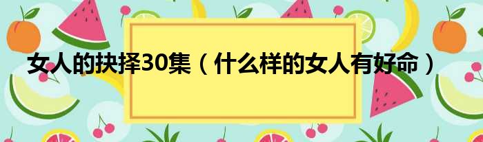 大家好,今天小六子来为大家解答以下的问题,关于女人的抉择30集,什么样的女人有好命这个很多人还不知道,现在让我们一起来看看吧!