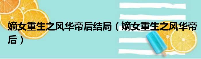 嫡女重生之风华帝后结局 嫡女重生之风华帝后 网络整理 经验 2023-06-22 02:20:06 大家好,今天小六子来为大家解答以下的问题,关于嫡女重生之风华帝后结局,嫡女重生之风华帝后这个很多人还不知道,现在让我们一起来看看吧!1、《嫡女重生之帝后无双》的男主是百里霈。本文分享完毕,希望对你有所帮助。 声明:免责声明:本文来源网友投稿及网络整合仅代表文章作者的个人观点,与本站无关。其原创性、真实性以及文中陈述文字和内容未经本站证实,对本文以及其中全部或者部分内容文字的真实性、完整性和原创性本站不作任何保证或承诺,请读者仅作参考,并自行核实相关内容。投诉邮箱:1765130767@qq.com。 本文地址:https://www.anfu123.com/jingyan/74506.html