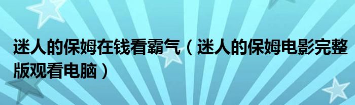 大家好,今天小六子来为大家解答以下的问题,关于迷人的保姆在钱看霸气,迷人的保姆电影完整版观看电脑这个很多人还不知道,现在让我们一起来看看吧!