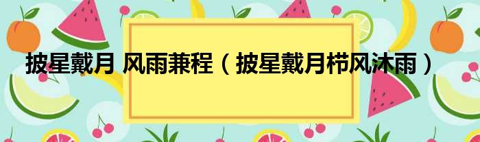 大家好,今天小六子来为大家解答以下的问题,关于披星戴月 风雨兼程,披星戴月栉风沐雨这个很多人还不知道,现在让我们一起来看看吧!