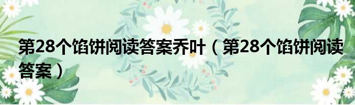 大家好,今天小六子来为大家解答以下的问题,关于第28个馅饼阅读答案乔叶,第28个馅饼阅读答案这个很多人还不知道,现在让我们一起来看看吧!