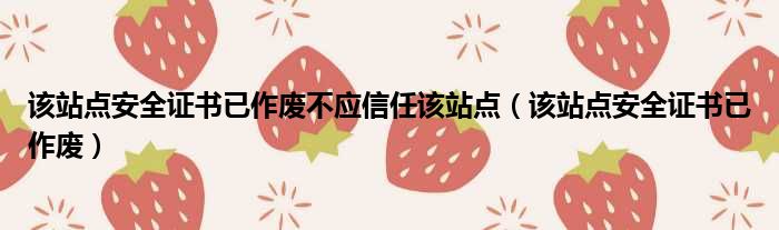 大家好,今天小六子来为大家解答以下的问题,关于该站点安全证书已作废不应信任该站点,该站点安全证书已作废这个很多人还不知道,现在让我们一起来看看吧!