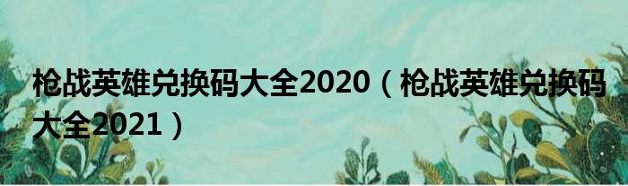 大家好,今天小六子来为大家解答以下的问题,关于枪战英雄兑换码大全2020,枪战英雄兑换码大全2021这个很多人还不知道,现在让我们一起来看看吧!