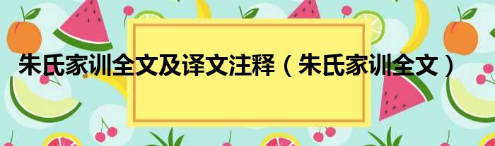 大家好,今天小六子来为大家解答以下的问题,关于朱氏家训全文及译文注释,朱氏家训全文这个很多人还不知道,现在让我们一起来看看吧!