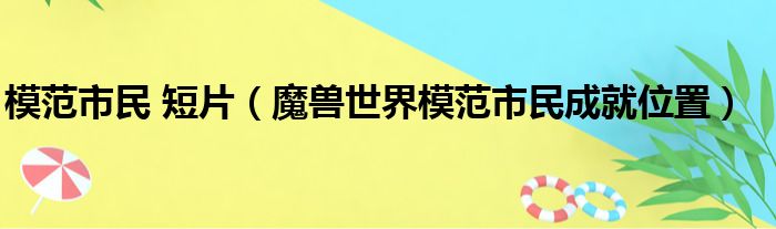 大家好,今天小六子来为大家解答以下的问题,关于模范市民 短片,魔兽世界模范市民成就位置这个很多人还不知道,现在让我们一起来看看吧!