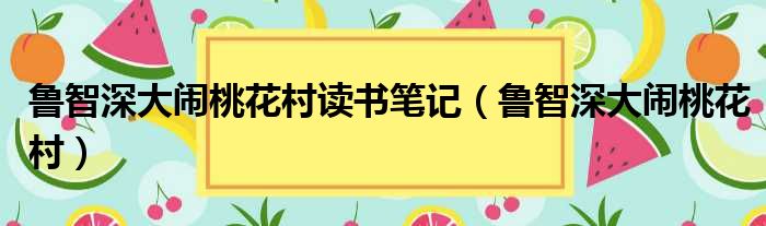 大家好,今天小六子来为大家解答以下的问题,关于鲁智深大闹桃花村读书笔记,鲁智深大闹桃花村这个很多人还不知道,现在让我们一起来看看吧!
