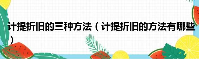 大家好,今天小六子来为大家解答以下的问题,关于计提折旧的三种方法,计提折旧的方法有哪些这个很多人还不知道,现在让我们一起来看看吧!