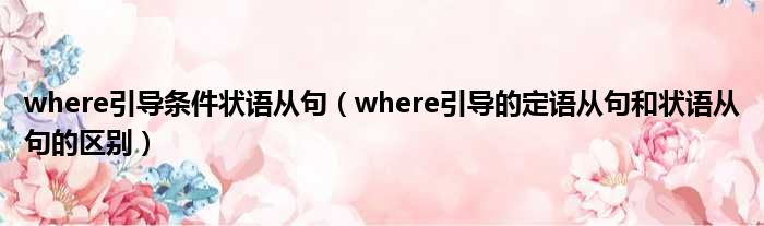 大家好,今天小六子来为大家解答以下的问题,关于where引导条件状语从句,where引导的定语从句和状语从句的区别这个很多人还不知道,现在让我们一起来看看吧!