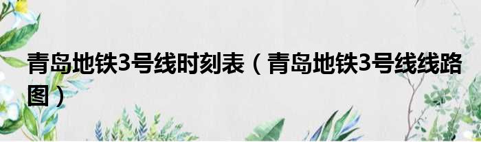大家好,今天小六子来为大家解答以下的问题,关于青岛地铁3号线时刻表,青岛地铁3号线线路图这个很多人还不知道,现在让我们一起来看看吧!