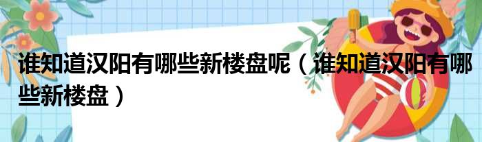 大家好,今天小六子来为大家解答以下的问题,关于谁知道汉阳有哪些新楼盘呢,谁知道汉阳有哪些新楼盘这个很多人还不知道,现在让我们一起来看看吧!