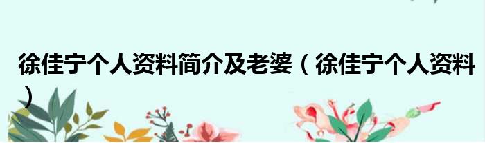 大家好,今天小六子来为大家解答以下的问题,关于徐佳宁个人资料简介及老婆,徐佳宁个人资料这个很多人还不知道,现在让我们一起来看看吧!