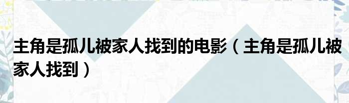 大家好,今天小六子来为大家解答以下的问题,关于主角是孤儿被家人找到的电影,主角是孤儿被家人找到这个很多人还不知道,现在让我们一起来看看吧!
