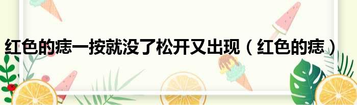 大家好,今天小六子来为大家解答以下的问题,关于红色的痣一按就没了松开又出现,红色的痣这个很多人还不知道,现在让我们一起来看看吧!