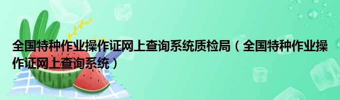 大家好,今天小六子来为大家解答以下的问题,关于全国特种作业操作证网上查询系统质检局,全国特种作业操作证网上查询系统这个很多人还不知道,现在让我们一起来看看吧!