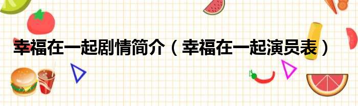 大家好,今天小六子来为大家解答以下的问题,关于幸福在一起剧情简介,幸福在一起演员表这个很多人还不知道,现在让我们一起来看看吧!
