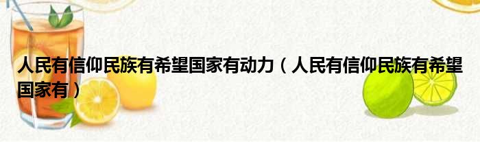 大家好,今天小六子来为大家解答以下的问题,关于人民有信仰民族有希望国家有动力,人民有信仰民族有希望国家有这个很多人还不知道,现在让我们一起来看看吧!