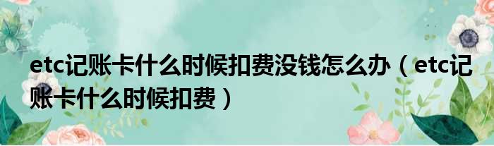 大家好,今天小六子来为大家解答以下的问题,关于etc记账卡什么时候扣费没钱怎么办,etc记账卡什么时候扣费这个很多人还不知道,现在让我们一起来看看吧!